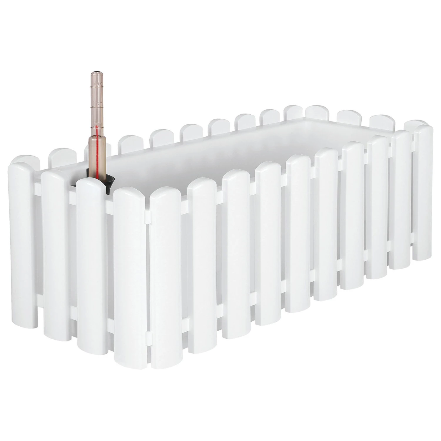 Im Bewässerungsblumenkasten ‚Aqua Palido‘ fühlen sich Ihre Pflanzen wohl. Er ist mit einem speziellen Bewässerungssystem und einem leicht ablesbaren Wasserstandsanzeiger versehen. So ist die Pflanzenpflege einfach. Mit seinem modernen Design in Weiß passt der Blumenkasten zu vielen Gartenmöbeln. Er besteht aus strapazierfähigem Kunststoff und ist 47 x 19,5 x 17 cm groß.