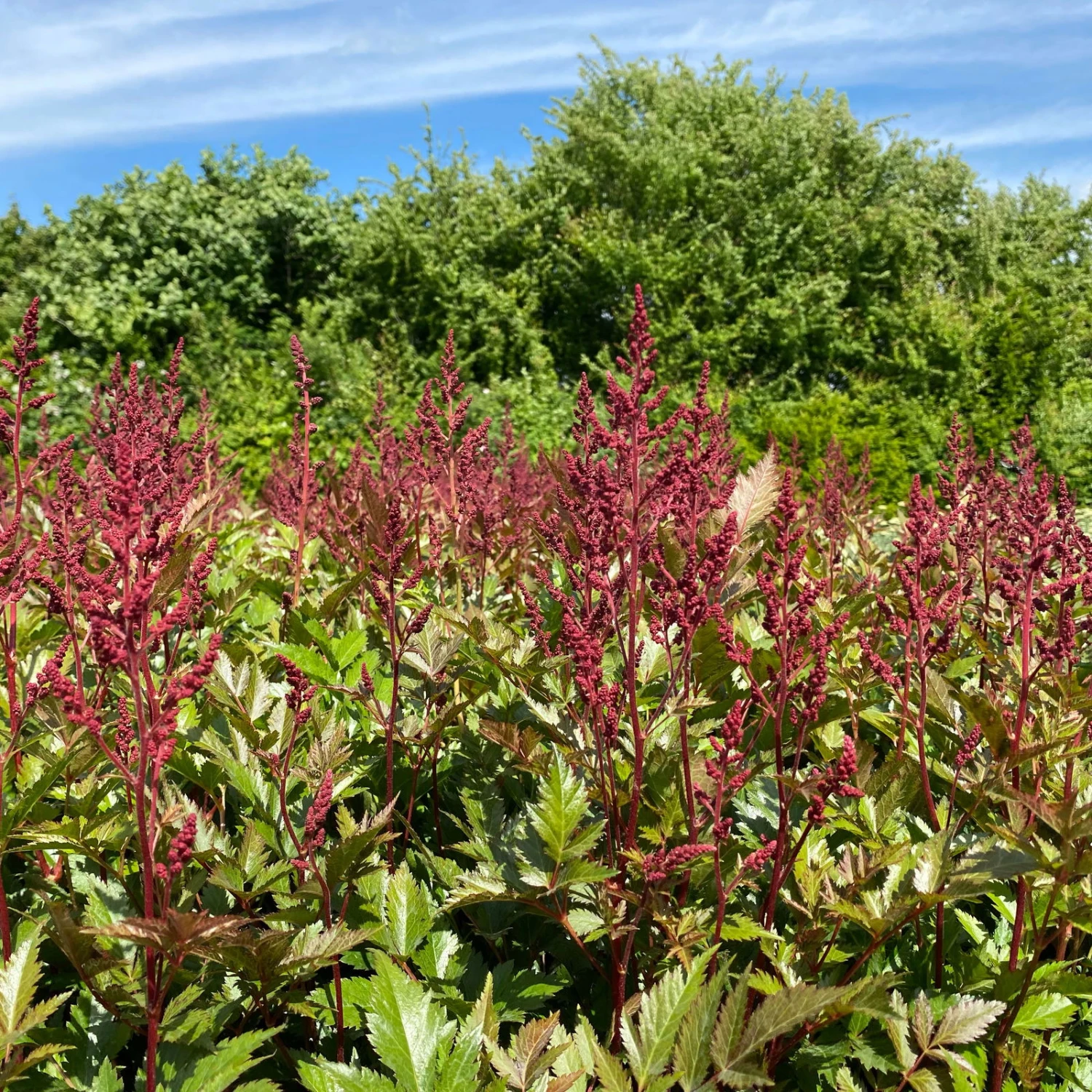 Wie flauschige Federn muten die zarten Blütenstände der winterharten Astilben an. Zaubern Sie mit Prachtspieren eine bisher nicht gekannte Leichtigkeit an jeden beliebigen Standort in Ihrem Garten. Besonders flächig gepflanzt, in Gruppen von 3 bis 5 Pflanzen oder mehr, kommt die zauberhafte Wirkung dieser Stauden zur Geltung. Dank der langen Blütezeit im Spätsommer ist für intensive Farbtupfer im Sommergarten gesorgt. Die leuchtend roten Blüten dieser Prachtspiere stehen im harmonischen Kontrast zum sattgrünen Laub. Die Blütenpracht ist vor allem üppig an Standorten mit ausreichend durchlässigem Boden und Nährstoffen.