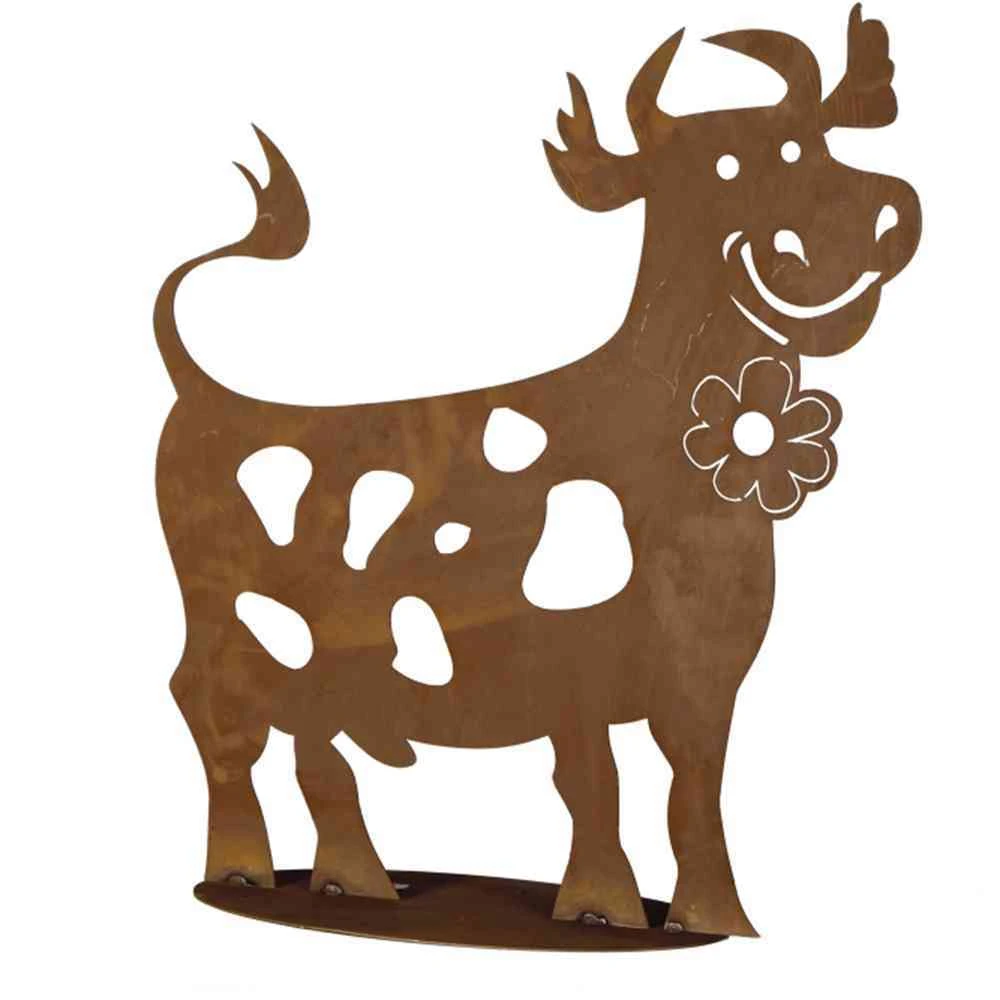 Als eine originelle Gartendeko erweist sich die „Lustige Kuh“ mit einer Höhe von 60 cm. Ihre attraktive Optik entwickelt sie einerseits durch die Form, andererseits durch die Oberflächen mit Naturrost. Dank des Farbtons bringt sie einen Hauch Retro-Charme in den Außenbereich – von der Terrasse bis hin zum Ziergarten mit weiteren dekorativen Accessoires. Für einen guten Stand sorgt die Bodenplatte. Hergestellt wird die Figur in toller Qualität aus Stahlblech, das witterungsbeständig ist. Setzen Sie einen reizvollen Akzent mit der frei platzierbaren Gartendeko „Lustige Kuh“ an jedem gewünschten Aufstellplatz.