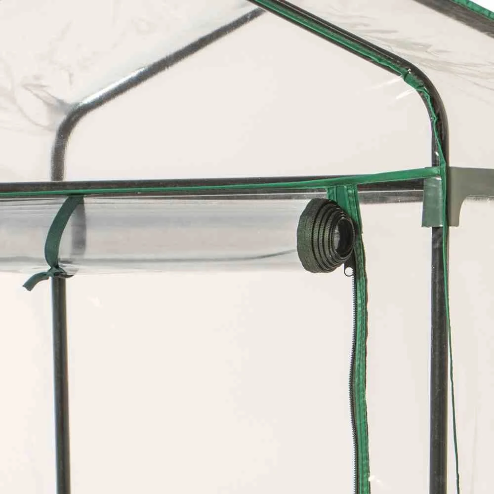 Für Hobbygärtner ist das grüne Gewächshaus der Marke Siena Garden ein absoluter Gewinn. Drei Etagen und großzügige Maße von 126 x 70 x 50 Zentimeter bieten genügend Platz für die Anpflanzung Ihrer Lieblingskräuter und Pflanzen auf dem Balkon, der Terrasse oder dem kleinen Garten. Das Stahlrohrgestell des Gewächshauses bildet seine Basis; es ist robust und spendet genügend Stabilität für den Pflanzvorgang. Die transparente PVC-Folie verfügt über eine Reißverschlusstür und erweist sich somit als ideale Unterstützung für die Saatkeimung. Die drei Böden des Siena Garden Gewächshauses erlauben die unterschiedliche Anpflanzung diverser Keimlinge. Entscheiden Sie sich beispielsweise für eine Sorte pro Etage und schauen Sie den Stecklingen beim Wachsen zu! Das Gewächshaus besteht überdies aus Kunststoff und erstrahlt in einladender, grüner Farbe. Sie können es nicht nur funktional nutzen, sondern auch als schicke Dekoration verwenden. Es kommt unmontiert, ermöglicht aber eine einfache Montage.