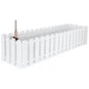 Dekorieren Sie Ihr Zuhause mit grünen oder blühenden Pflanzen mithilfe von diesem dekorativen Haken-Blumentopfhalter. Der schlanke Topfhalter aus robustem Metall ist in neutralem weiß gestaltet und eignet sich zum Einhängen am Balkongeländer oder zum Beispiel an einem Heizkörper. Der Blumentopfhalter eignet sich für mittelgroße Blumentöpfe und punktet mit funktionellem Design.