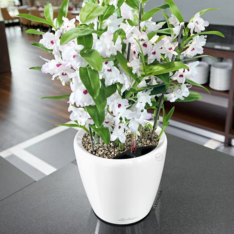 Im Lieferumfang dieses Komplettsets ist zusätzlich zum Lechuza Pflanzgefäß Classico Premium LS in weiß Hochglanz auch der Pflanzeinsatz, das Granulat für die Drainageschicht sowie der Wasserstandsanzeiger enthalten.