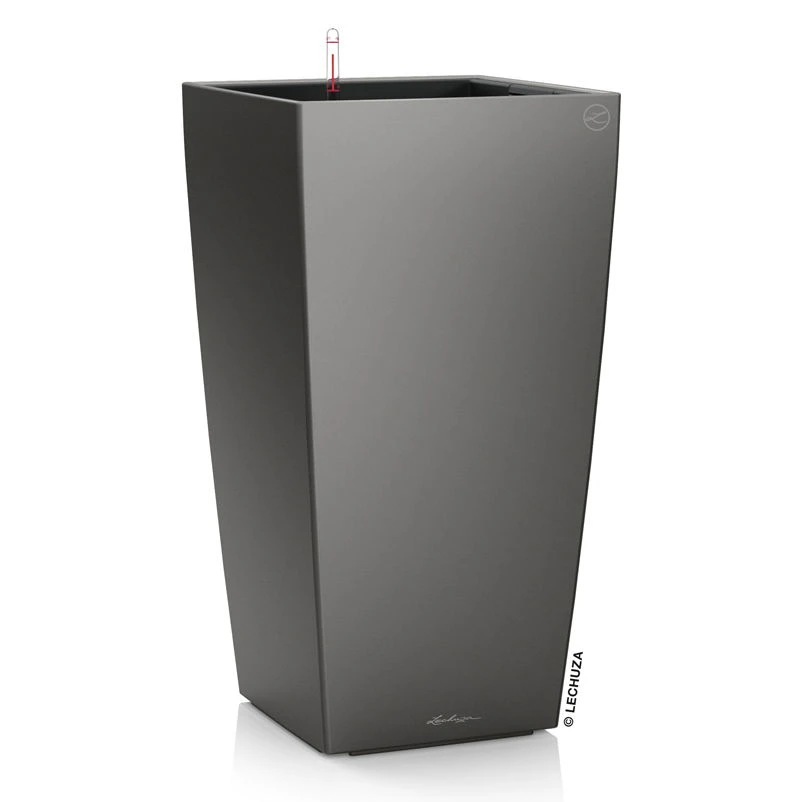 LECHUZA Cubico Premium 30, Anthrazit-metallic, All-in-One-Set, 30×30, H:56 Cm