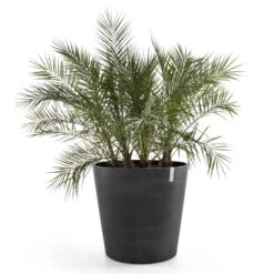 Mit dem Pflanzgefäß ‚Amsterdam‘ begrünen Sie Innenräume oder den Außenbereich auf eine stilvolle und zugleich nachhaltige Art. Dieser Pflanztopf mit Rollen aus dem Hause Ecopots präsentiert sich in angesagtem Dunkelgrau und scheint aus Trendmaterial Beton gefertigt zu sein. Jedoch besteht ‚Amsterdam‘ aus recyceltem Stein- und Kunststoffpulver, das den Pflanztopf frostfest und bruchsicher macht.