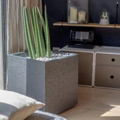Neben der ansprechenden Farbe und der leicht strukturierten Oberfläche überzeugt das Pflanzgefäß Graphit Dado mit einer doppelten Innenfläche und einer Wasseransammlungszone. Da er wasserdicht ist, eignet sich der Pflanztrog Graphit Dado sowohl für den Außen- wie auch für den Innenbereich.